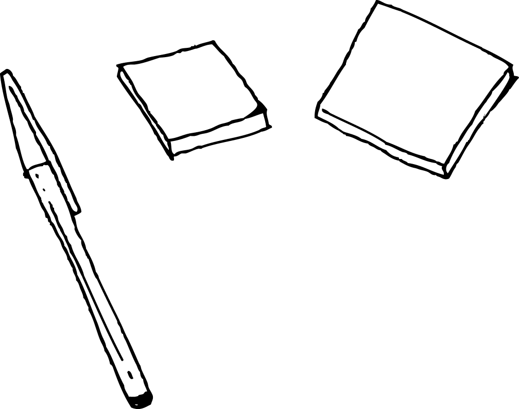 • Post-it jaunes et bleus, stylos